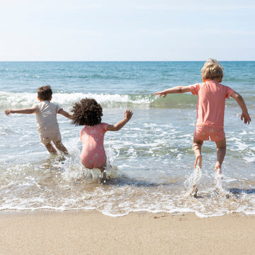 Protege a tu peque del sol con el bañador con cremallera con protección solar Estrellitas....