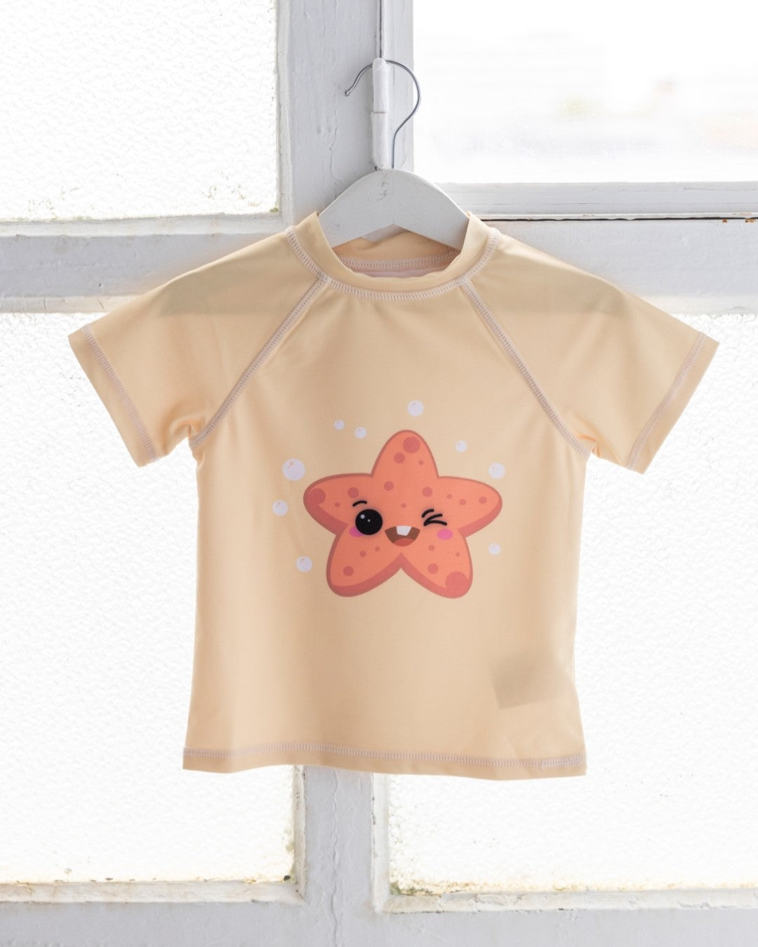 Protege a tu peque del sol con la camiseta con protección solar Estrellitas. Está fabricada...