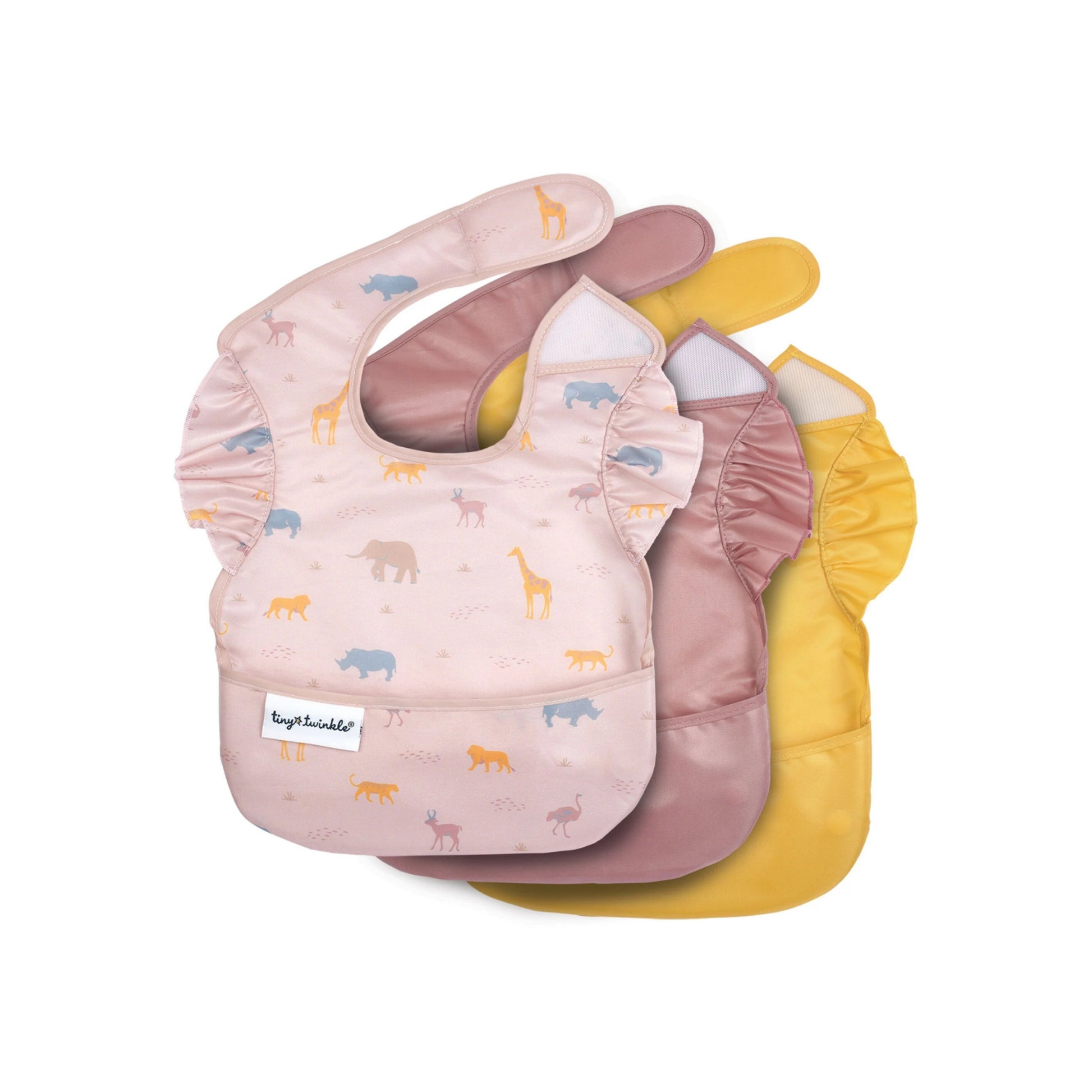 Los baberos de Tiny Twinkle es la solución perfecta para mantener a tu bebé limpio y seco durante las comidas. Con bolsillo con tapa para derrames y material suave, liviano e impermeable.