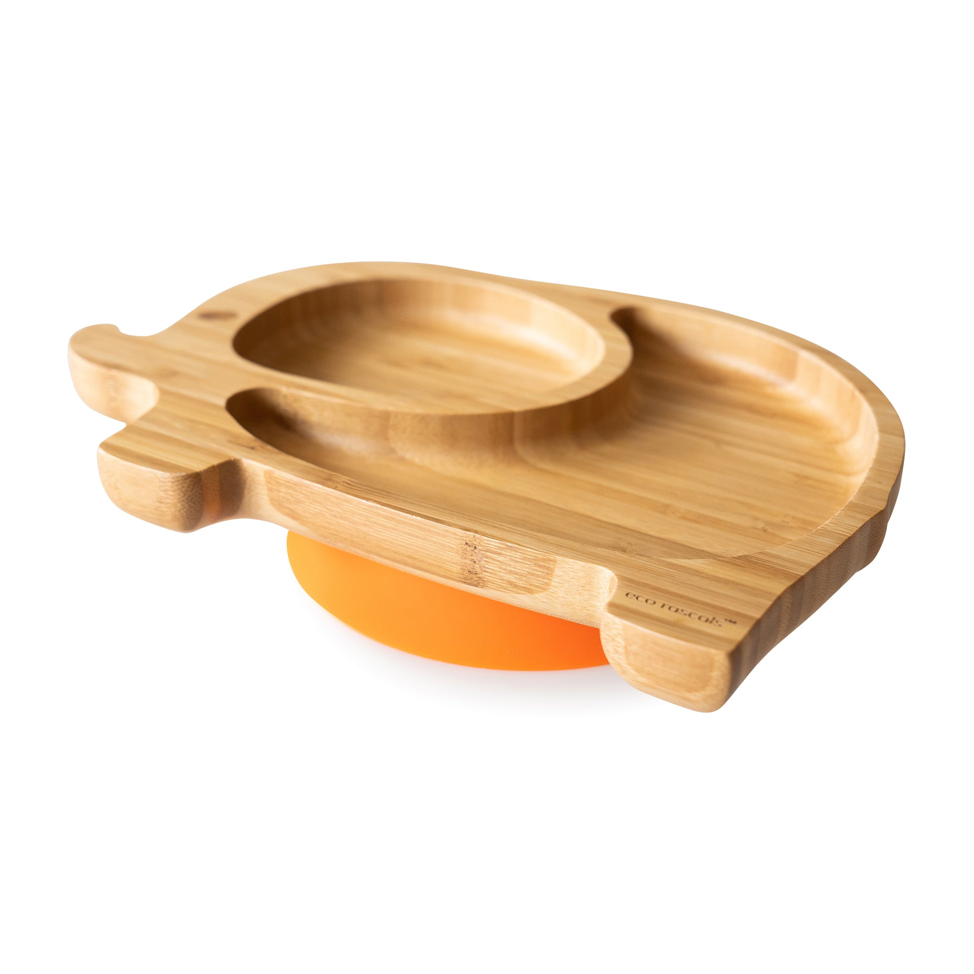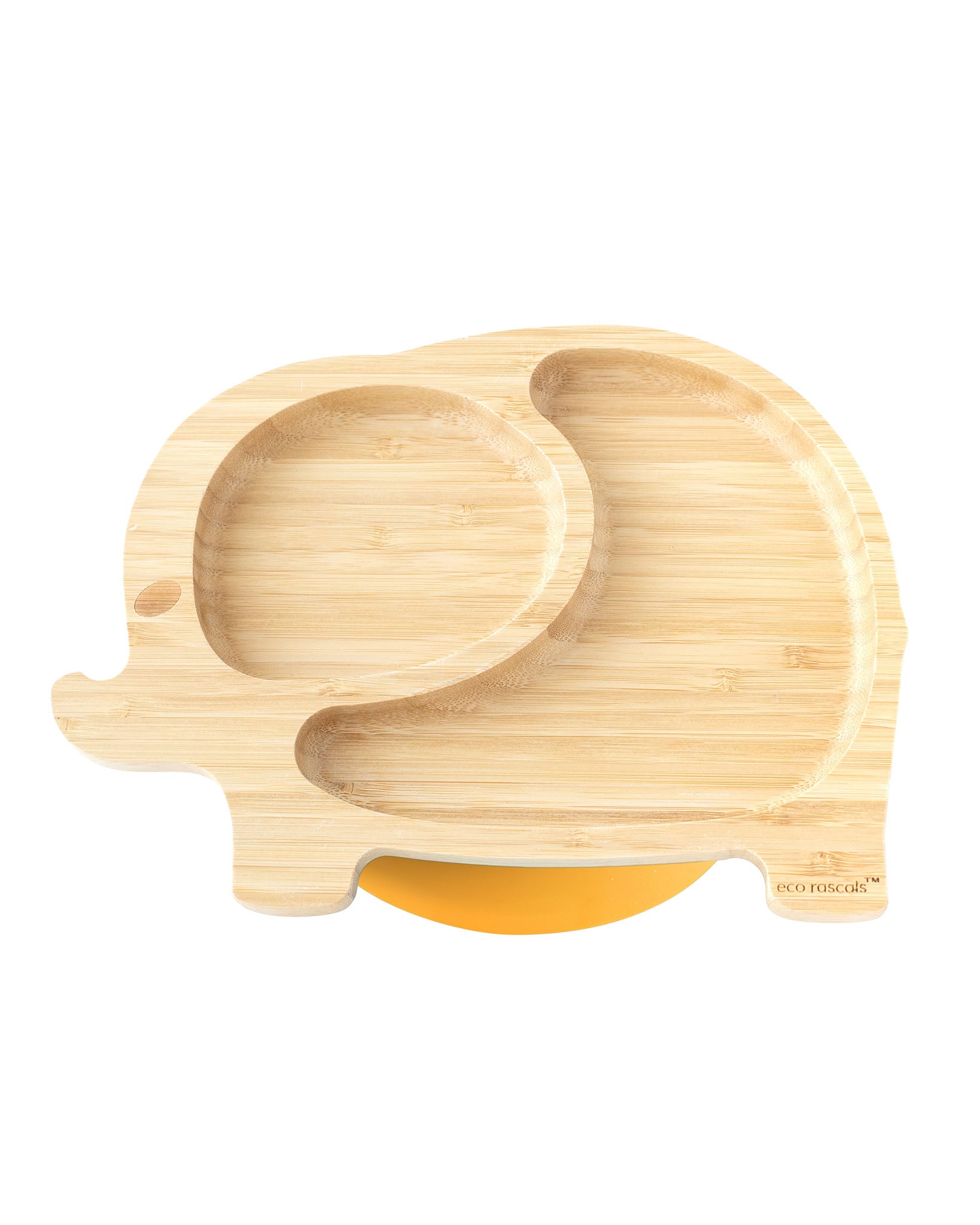 Plato de madera de bambú, con ventosa de succión de silicona que se adhiere a la mesa, de Eco Rascals. Su exclusiva ventosa de silicona es desmontable, y se adhiere a la mesa para evitar resbalones y deslizamientos del plato, para que la comida no se vuelque y hacer su uso más fácil por los niños.