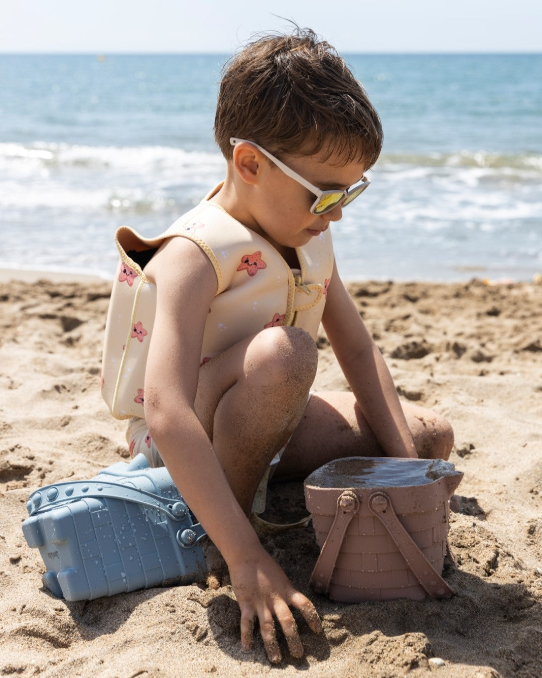 ¡Con este set de playa estarás listo para divertirte bajo el sol! El cubo de playa y la pala son perfectos para construir castillos, acompañado de 4 adorables moldes de animales marinos. Piezas flexibles y fáciles de desmoldar. Además, los pop ups añaden un toque de diversión a tus juegos en la playa.